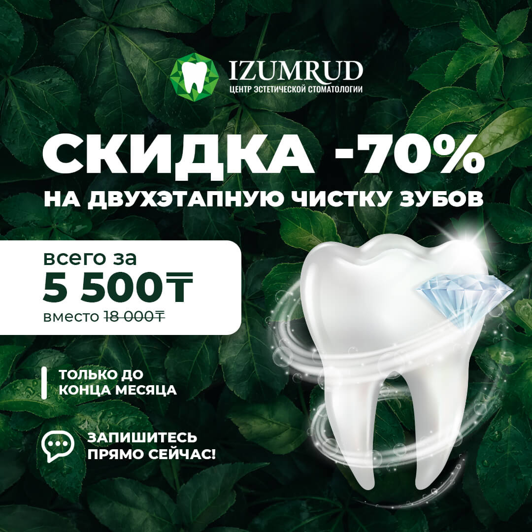 Профессиональная чистка зубов за 5 500 ₸ вместо 18 000 ₸