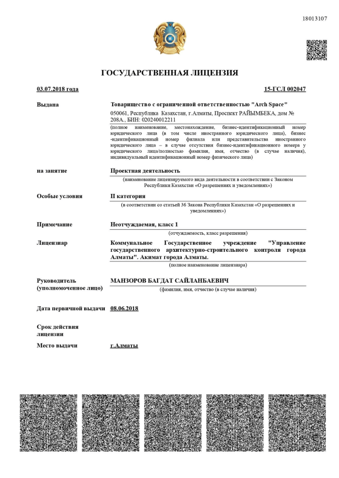 ТОО «Arch Space» - проектная компания основанная 2018 году. В нашей команде на протяжении нескольких лет трудятся квалифицированные специалисты, как архитекторы, проектировщики, инженеры, строители и дизайнеры. Масштабы наших работ разбегаются от индивидуальных жилых домов до диапазона крупных жилых комплексов. ТОО «Arch Space» зарекомендовало себя на рынке как надёжный партнёр, мы отличаемся демократичным прайсом, высоким качеством выполненных работ и пунктуальностью.